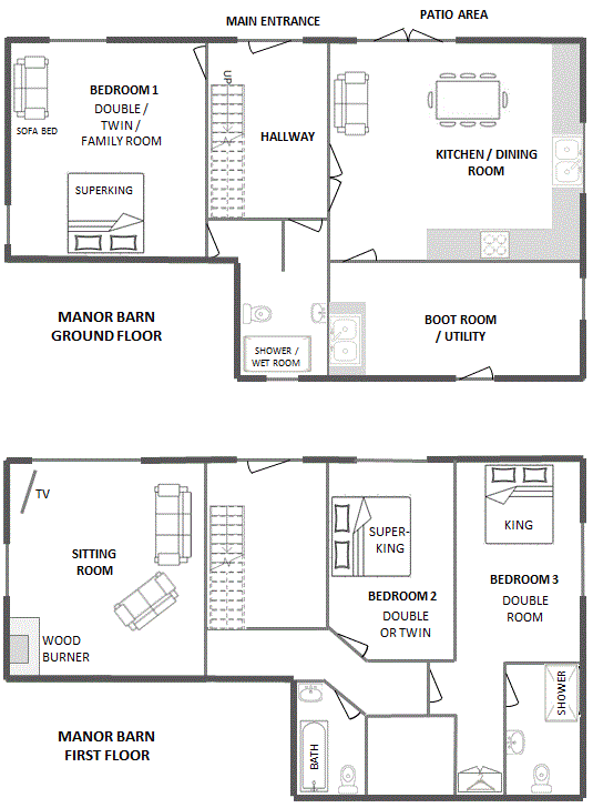 • All beds are king size doubles or by prior arrangement can be split to provide two single beds