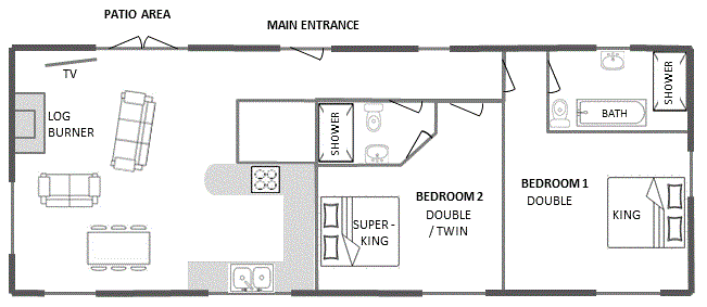 • All beds are king size doubles or by prior arrangement can be split to provide two single beds